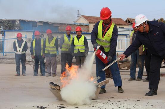 冬季是火災(zāi)高發(fā)季節(jié),為把消防安全工作落到實處,提高火災(zāi)應(yīng)急能力,讓員工熟練掌握滅火器的使用方法,確保消防安全, 活動現(xiàn)場,首先由安全科長莊景亮對施工人員普及宣貫如何避免火災(zāi)、發(fā)生火災(zāi)時如何自救逃生及火災(zāi)應(yīng)急處理相關(guān)注意事項等知識,并講解如何辯別、使用干粉式滅火器。隨后,對滅火器正確使用進行現(xiàn)場指導(dǎo),同時大家逐一親身體驗滅火器的操作使用并進行現(xiàn)場滅火。最后,在項目部安全科人員組織指導(dǎo)下,企業(yè)員工有序的參加了以疏散、逃生、自救為主的消防演練活動。