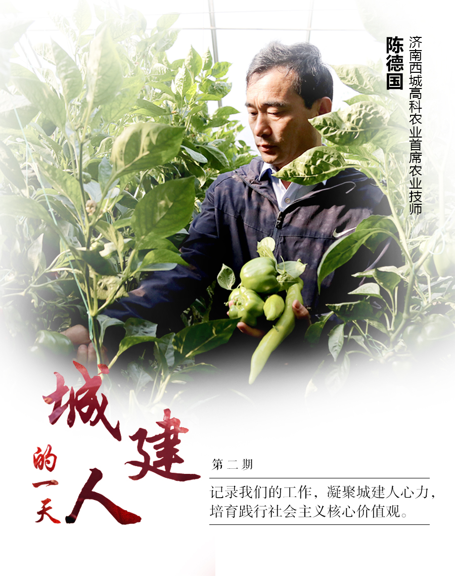 陳德國,現(xiàn)任濟南城市建設(shè)集團所屬濟南西城高科農(nóng)業(yè)發(fā)展有限公司首席農(nóng)業(yè)技師。2000年,帶頭建起商河縣玉皇廟鎮(zhèn)第一批高溫大棚。2011年,在濟南市菜椒評比大賽獲得菜椒王特等獎。2014年7月進入高科公司工作,歷任技術(shù)員、園區(qū)副主任,生產(chǎn)部技術(shù)總監(jiān)。2017年獲得濟南市勞動模范稱號,2018年獲得山東省勞動模范稱號。