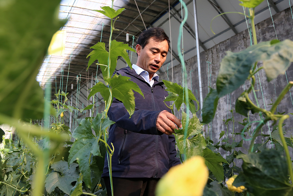 在絲瓜棚,陳德國邊檢查著絲瓜生長情況邊解釋說“這個棚的種植戶貪多,總想著一個藤上結(jié)好幾個瓜,但實際上果多不等于產(chǎn)量高,有時候一個藤上好幾個果反而營養(yǎng)供不上了。”對于各類蔬菜種植,經(jīng)過18年的不斷實踐學習,陳德國逐漸總結(jié)出了自己的一套“種植經(jīng)”。