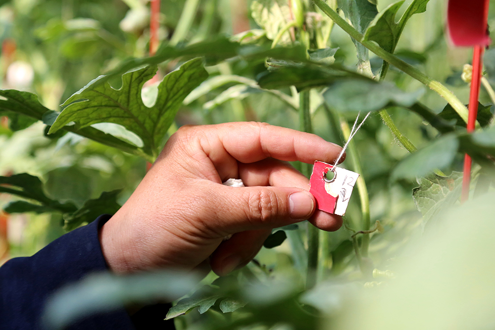 9:15在園區(qū)西瓜種植上,陳德國沒有照搬仁風西瓜的“彩繩法”,而是自創(chuàng)“標簽作法”,即根據(jù)授粉時間與成熟期給西瓜藤掛上不同號碼的牌子,根據(jù)生長周期判斷是否成熟。