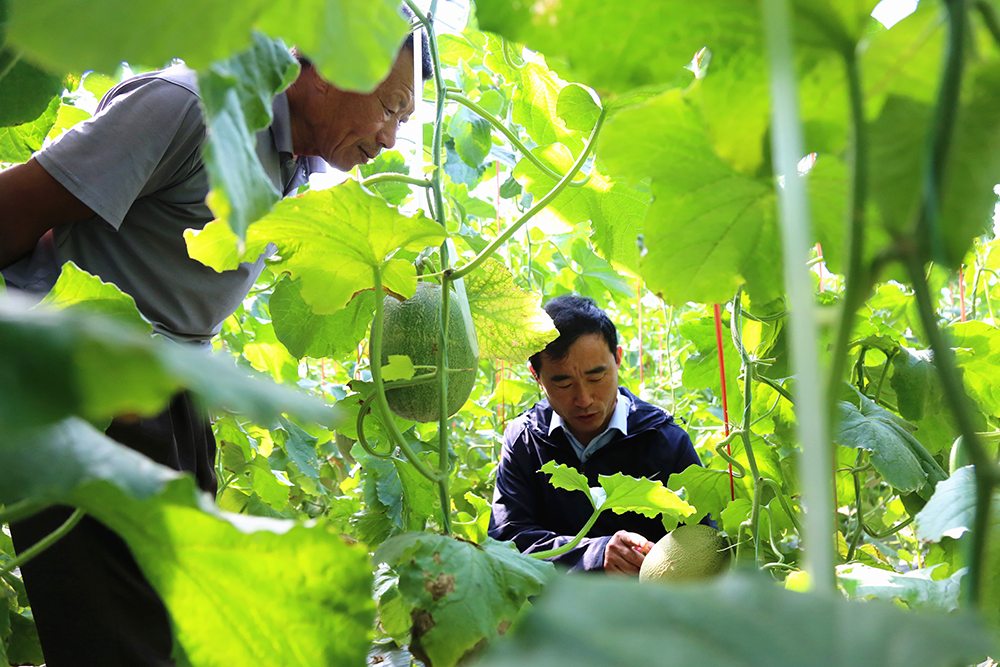 陳德國聯(lián)系了其他種植哈密瓜的技術(shù)員,一同前往園區(qū)哈密瓜棚進行交流學習。在園區(qū),這種種植戶之間的交流學習幾乎每天都存在,陳德國也樂于當個牽線人,園區(qū)發(fā)展好了種植戶有效益才是最終目標。