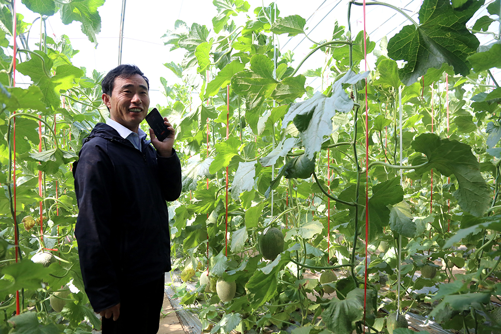 在哈密瓜種植棚里,陳德國已經(jīng)電話安排好了本周六的采摘活動。現(xiàn)在正值采摘黃金季,前來植樹踏青、大棚蔬菜瓜果采摘、園區(qū)觀光的團隊絡(luò)繹不絕。