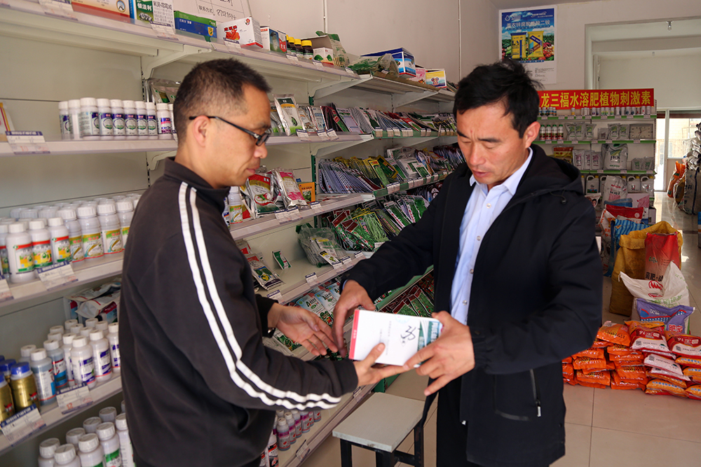 15:00陳德國前往黃瓜棚與西紅柿棚給種植戶送中午買的藥物和肥料。“買的都是進口特效藥,質(zhì)量是一個公司的名譽問題,大家一定抓好了別掉以輕心。”陳德國說道。