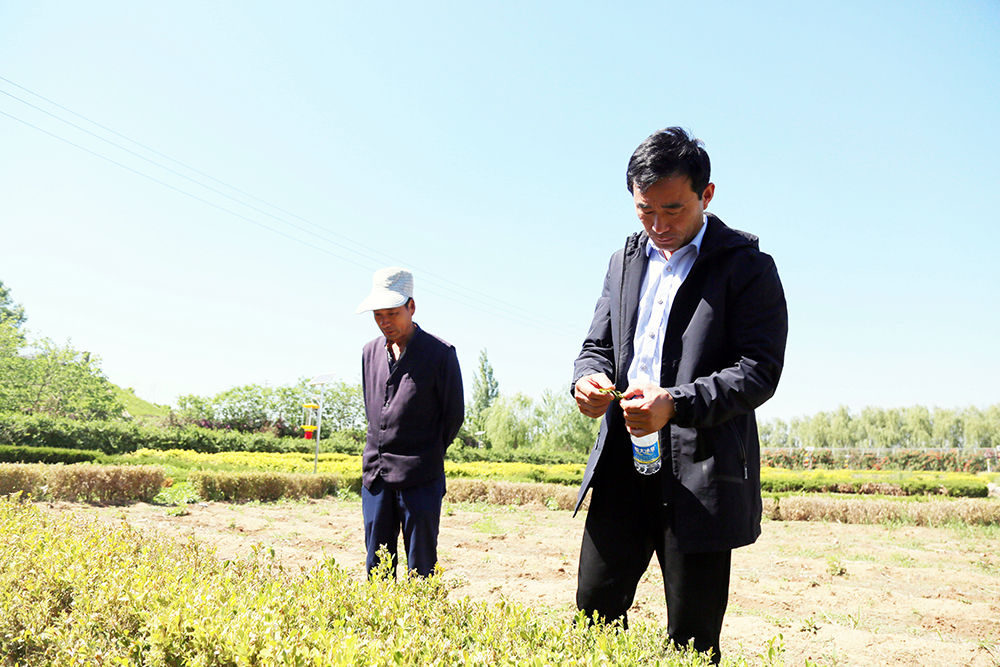 14:00去往連棟溫室的路上,陳德國碰到了園林區(qū)的一位同事,向他反映了部分苗木的病蟲害問題,陳德國隨即與同事實地察看了病蟲害情況,制定了應(yīng)對方案。防患于未然,哪怕碰到一點小問題也不大意拖延,這是陳德國的一貫作風。
