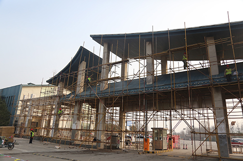 道路廣場及展園維修工程主要以辦公樓、主展館及各展園建筑墻面、地面、防水維修以及園區(qū)道路、廣場維修為主。目前,破損墻皮打磨處理約8000平方米,鋼制結(jié)構(gòu)除銹打磨刷漆約4500平方米。由于展園較分散、維修量大,計(jì)劃增加施工人員,加快工程施工進(jìn)度,確保按期完工。