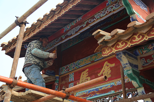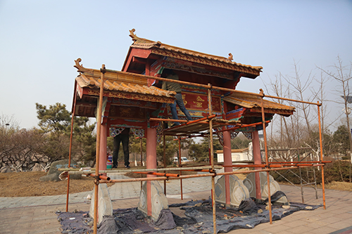 展園內(nèi)仿古彩繪維修項(xiàng)目主要對原有展園仿古建筑中木作油漆和墻面漆脫落、瓦面破損等部位進(jìn)行維修,提高建筑觀賞性。共需涂刷油漆775平方米、彩畫1013平方米、更換瓦面490平方米、涂刷乳膠漆940平方米等,目前已涂刷仿古彩繪油漆約1990平方米。