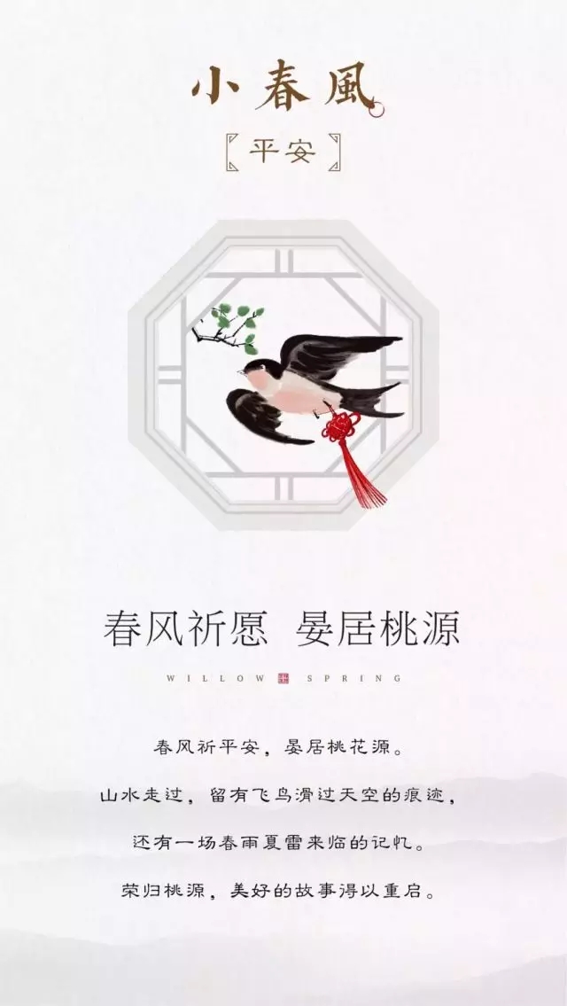小春風(fēng),以詩意的水墨風(fēng),將象征著生機、活力、美好與希望的春天收藏在這一座“都市桃花源”之中,寓意著春天的種種美好、春天般的幸福生活能夠常駐于此。