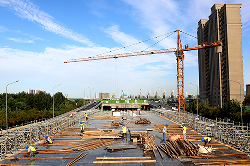 橋梁頂升結束后,將對103#~105#墩采用斷柱頂升接高墩柱的方法進行施工,墩柱頂升完成后,再對全橋進行墩柱連接和橋臺改造,最后施工支座墊石及支座安裝,安裝支座后進行落梁工作。項目計劃9月底完成高架段主體結構,后續(xù)將進行防撞墻、聲屏障、橋面、路燈、交通設施等施工。確保2019年1月1日實現(xiàn)北園大街快速路西延高架段通車,地面快速路將于2019年6月底通車。