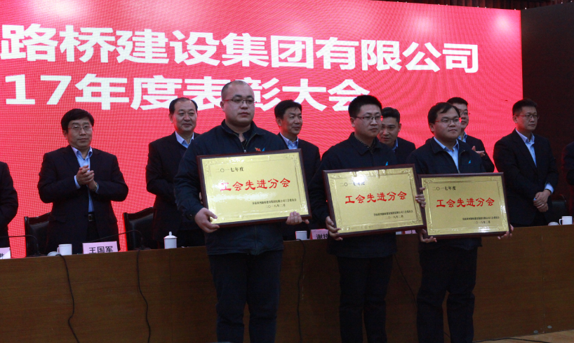 會議結(jié)束后,進(jìn)行了集團(tuán)公司2017年度表彰大會。對2017年度集團(tuán)公司先進(jìn)集體、先進(jìn)工作者;安全生產(chǎn)工作先進(jìn)集體、先進(jìn)個人;工會先進(jìn)分會和工會積極分子;科技創(chuàng)新工作先進(jìn)集體、先進(jìn)個人;優(yōu)秀項目經(jīng)理、項目總工和職工查隱患工作先進(jìn)個人;集團(tuán)公司派遣人員貢獻(xiàn)獎;優(yōu)秀配屬單位和優(yōu)秀材料供應(yīng)單位進(jìn)行了表彰,先進(jìn)集體及個人代表分別上臺進(jìn)行了領(lǐng)獎。