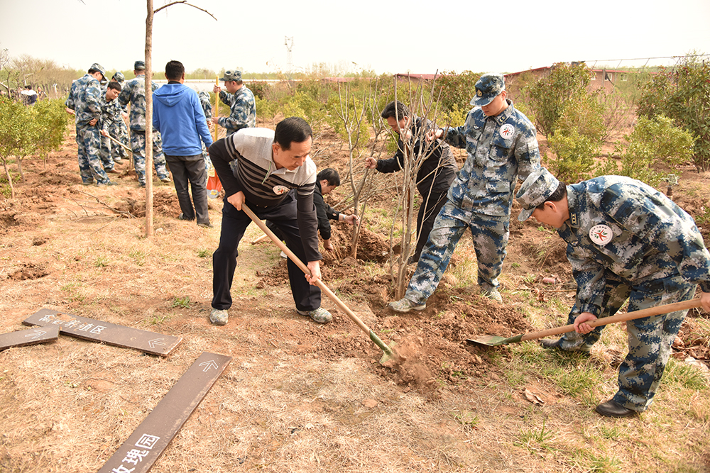 植樹(shù)現(xiàn)場(chǎng)大家繁忙有序、干勁十足,在技術(shù)人員專(zhuān)業(yè)指導(dǎo)下,一部分同志穿戴各自的工裝、迷彩服,揮舞著自己的隊(duì)旗,佩戴著“造綠濟(jì)南,志愿奉獻(xiàn)”的LOGO徽標(biāo),鏟土挖坑、扶苗栽樹(shù);還有一部分同志對(duì)去年栽種的100多棵北美海棠樹(shù)進(jìn)行培土、澆水、剪枝,并對(duì)周邊的垃圾進(jìn)行拾撿清理為內(nèi)容的“回頭看”勞動(dòng)。在大家共同努力下,經(jīng)過(guò)一個(gè)半小時(shí)的忙碌。共栽植近200余棵木槿樹(shù)。