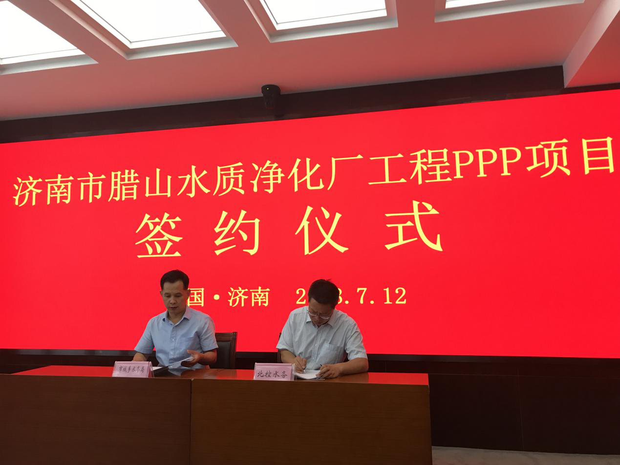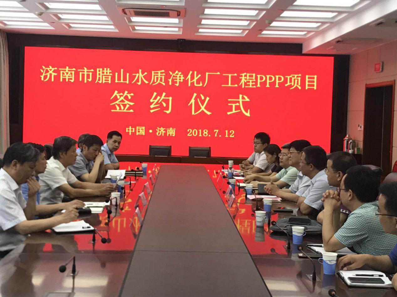 2018年7月12日上午10點30分,在龍奧大廈G1407會議室,市城鄉(xiāng)水務(wù)局舉行了濟南市臘山水質(zhì)凈化廠工程政府和社會資本合作(PPP)項目簽約儀式,與中標單位北控水務(wù)(中國)投資有限公司簽署了ppp項目合同。會議由市城鄉(xiāng)水務(wù)局排水處處長湯啟剛主持,市城鄉(xiāng)水務(wù)局副巡視員朱丹彤做出重要講話,資產(chǎn)運營公司副總經(jīng)理李琰、北控水務(wù)東部大區(qū)總經(jīng)理于良法先后發(fā)言。