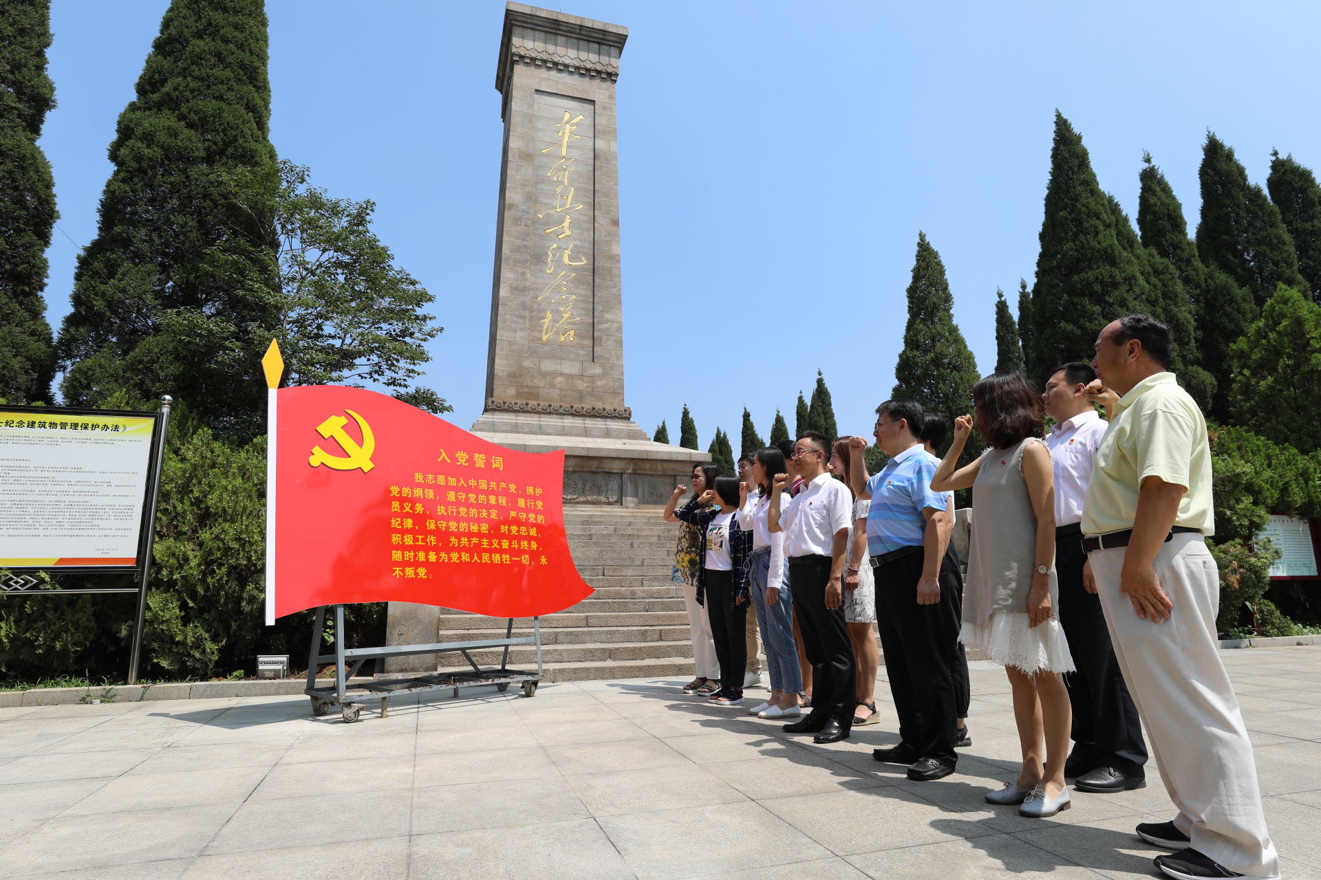 在萊蕪戰(zhàn)役史紀(jì)念館,全體黨員干部認(rèn)真聆聽講解,仔細(xì)觀看歷史圖片、資料,重溫革命歷史,詳細(xì)了解萊蕪戰(zhàn)役的榮耀歷程,深刻緬懷了革命戰(zhàn)士不怕犧牲、浴血奮戰(zhàn),聯(lián)合人民舍小家、顧大家、全力支前,保證萊蕪戰(zhàn)役取得勝利的革命精神。在革命烈士紀(jì)念碑下,大家鄭重舉起右手,重溫入黨誓詞,重新感受入黨初心。