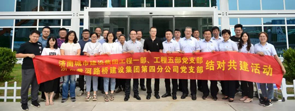 為深入貫徹習(xí)近平新時代中國特色社會主義思想和黨的十九大精神,推進全面從嚴(yán)治黨在基層走深走實,著力構(gòu)建基層黨組織互幫互助常態(tài)化,形成優(yōu)勢互補、共同提升的基層黨建工作新格局,7月9日下午,濟南城市建設(shè)集團工程一與工程五部黨支部聯(lián)合濟南黃河路橋第四分公司黨支部在張劉片區(qū)項目部開展結(jié)對共建活動。濟南城市建設(shè)集團副總經(jīng)理孫培梁,工程一與工程五部黨支部書記郭正,濟南黃河路橋集團公司黨委委員、副總經(jīng)理楊中生,第四分公司黨支部書記、分公司經(jīng)理伏燕云出席會議,支部全體黨員參加活動。