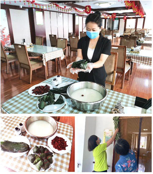 為響應(yīng)疫情防控的號(hào)召、保證長者的生命健康安全,金齡健康-山東濟(jì)南養(yǎng)老服務(wù)中心的舜耕餐飲以及園區(qū)的工作人員們親手包好了粽子,將飽含著“端午安康”寓意的粽子親手送到每位長者的家中。同時(shí),工作人員們挨家挨戶為長者贈(zèng)送艾草,并幫助長者將艾草懸掛在門口。長者朋友們親手為園區(qū)的工作人員們編織了驅(qū)災(zāi)病、保安康的五彩繩,并以詩詞等形式為工作人員送出了美好的祝愿。