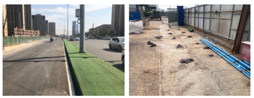 為避免施工對現(xiàn)狀交通及周邊居民生活產(chǎn)生過大影響,項(xiàng)目部通過認(rèn)真研究,在早晚高峰時(shí)期不進(jìn)行道路上的施工項(xiàng)目,同時(shí)在22時(shí)至次日6時(shí)之間不進(jìn)行大型機(jī)械的地面作業(yè),避免噪聲影響居民休息。“通行道路鋪設(shè)鋼板對溝槽進(jìn)行覆蓋,改進(jìn)原工藝,先銑刨路面,將鋼板降至與瀝青齊平,保證市民行車舒適度,降低噪音,隧道斜井全部采用防塵防噪隔離棚全部棚蓋,將對周邊居民的影響降到最低”,城建集團(tuán)一分公司項(xiàng)目施工負(fù)責(zé)人吳建亮說道。