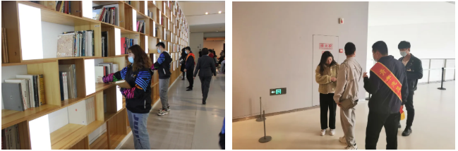 活動(dòng)現(xiàn)場(chǎng),志愿者們認(rèn)真聽取了美術(shù)館負(fù)責(zé)人對(duì)“雙年展”布展情況的介紹,了解志愿服務(wù)內(nèi)容。經(jīng)過(guò)分工,大家迅速到達(dá)自己的指定崗位,維持場(chǎng)館內(nèi)外排隊(duì)觀眾秩序,熱心引導(dǎo)、幫助觀眾尋找展廳,并協(xié)助工作人員整理擺放設(shè)施,提醒觀眾按照美術(shù)館要求文明參觀等,獲得了館內(nèi)工作人員的一致好評(píng)。
