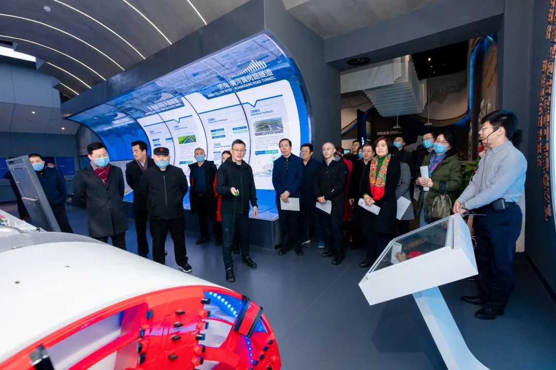 調研組一行實地察看了濟南黃河濟濼路隧道項目現場及“濟南城市建設集團四橋四隧跨黃通道項目展廳”,詳細了解了北跨橋隧項目的建設及運營情況,共同回顧了濟南黃河發(fā)展的歷史背景、發(fā)展脈絡以及新時代宏偉篇章。