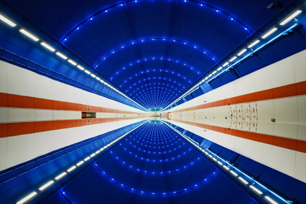 濟(jì)南黃河濟(jì)濼路隧道設(shè)計(jì)方案以黃河文化根脈為基,黃河之“光”為“場(chǎng)”,融合黃河歷史、文化、自然、藝術(shù)等表現(xiàn)黃河兩岸是我家。“黃河根脈歲歲安瀾”主題設(shè)計(jì)定位為城河相融,動(dòng)靜相融,蘊(yùn)含“天人合一”的設(shè)計(jì)理念,讓黃河隧道藝術(shù)空間景觀和自然互為補(bǔ)充。設(shè)計(jì)中借黃河水紋傳統(tǒng)紋樣,將黃河文化與自然生態(tài)中的場(chǎng)地、色彩、光影結(jié)合,再造了黃河地形與黃河流動(dòng)的自然之美,描繪了新時(shí)代黃河畫卷中詩(shī)情畫意的城市底蘊(yùn)。
