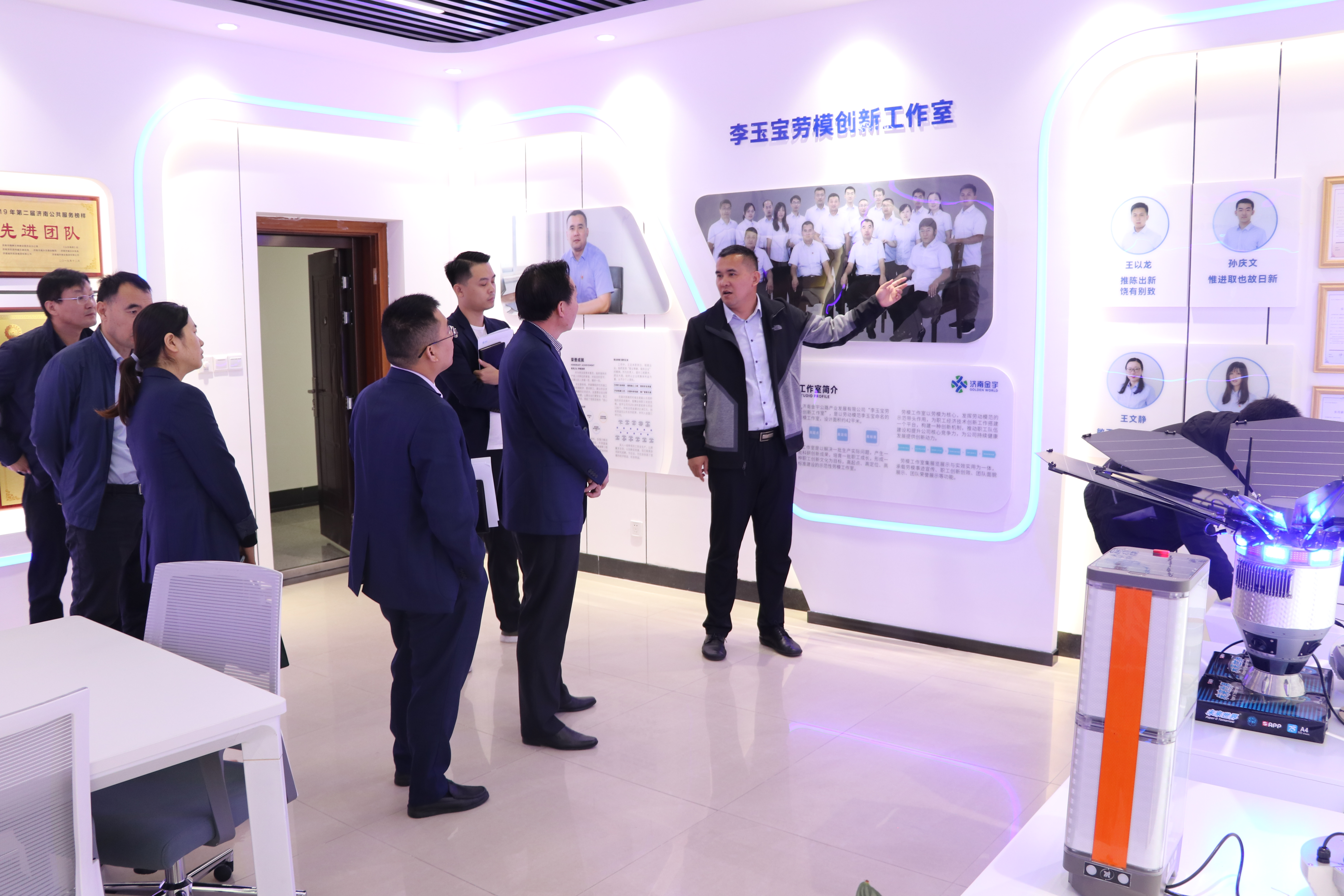 會(huì)后,大家共同參觀了公司創(chuàng)新工作室,對(duì)公司新研發(fā)的交通安全、車路協(xié)同高端裝備,以及各產(chǎn)品結(jié)構(gòu)組成、功能應(yīng)用和產(chǎn)品優(yōu)勢(shì)進(jìn)行了詳細(xì)了解。