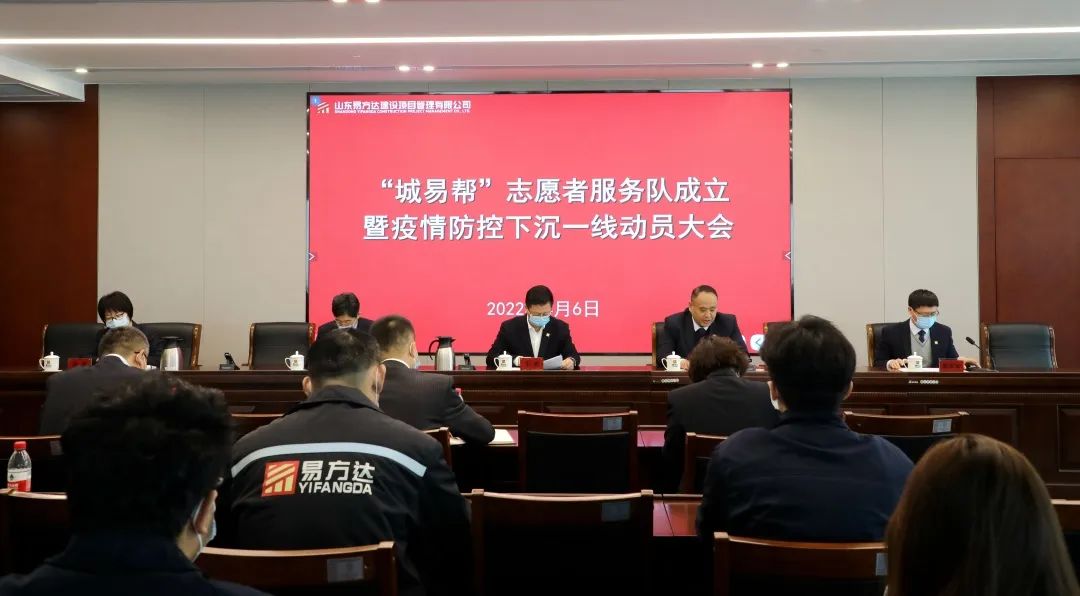 會議宣讀了公司工會關于《山東易方達建設項目管理有限公司關于成立“城易幫”志愿者服務隊的決定》,公司黨委書記、董事長牛勇向“城易幫”志愿者服務隊進行授旗。
