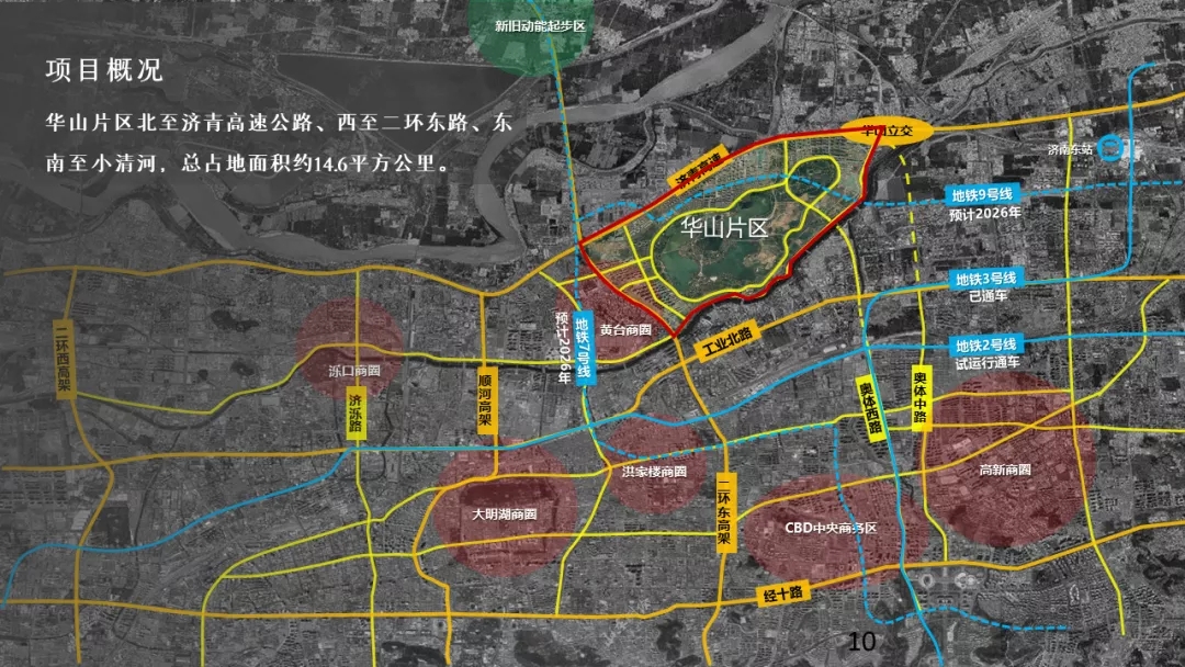 華山片區(qū)總占地面積約14.6平方公里,地處濟南市東北部,北鄰起步區(qū),與鵲山遙相呼應(yīng),區(qū)位優(yōu)越。片區(qū)規(guī)劃剩余可出讓用地約1666畝,擬采用整體策劃研究、分期實施的方式推進。