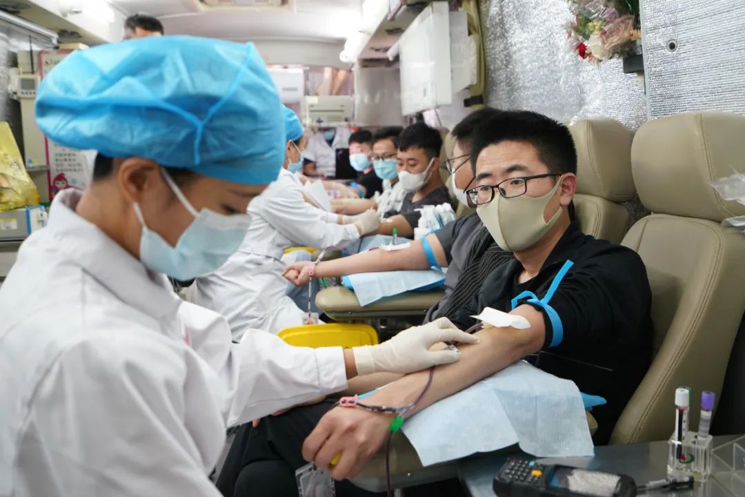 在獻血過程中,集團干部職工按照工作人員要求,有序進行登記確認、測量血壓、驗血檢查、采血等工作。
