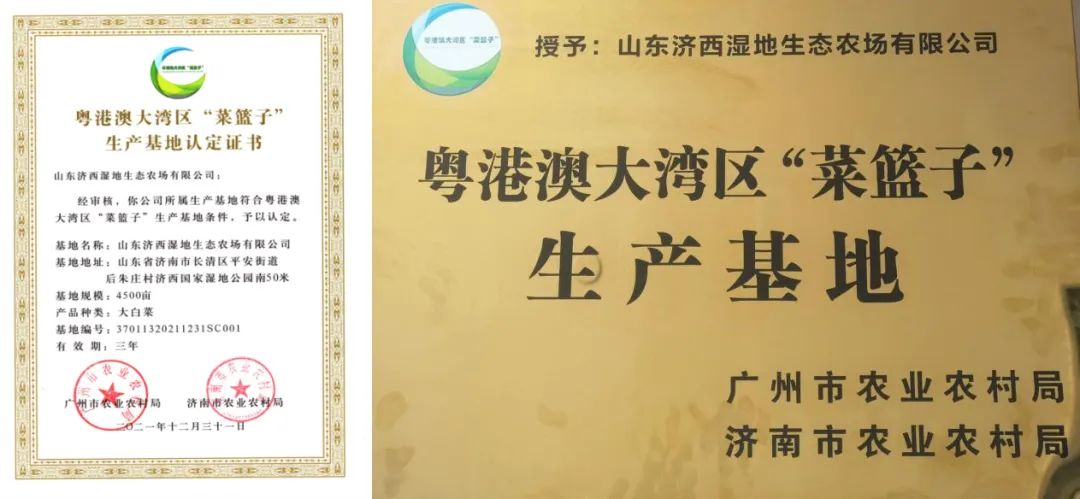 近日,山東濟(jì)西濕地生態(tài)農(nóng)場(chǎng)有限公司通過粵港澳大灣區(qū)“菜籃子”生產(chǎn)基地認(rèn)定,并被授予認(rèn)定證書和基地牌匾,標(biāo)志著濟(jì)西農(nóng)業(yè)高質(zhì)量的特色農(nóng)產(chǎn)品獲得“通行證”進(jìn)入粵港澳大灣區(qū)的“交易大廳”,為公司農(nóng)產(chǎn)品開拓粵港澳市場(chǎng)奠定了基礎(chǔ)。