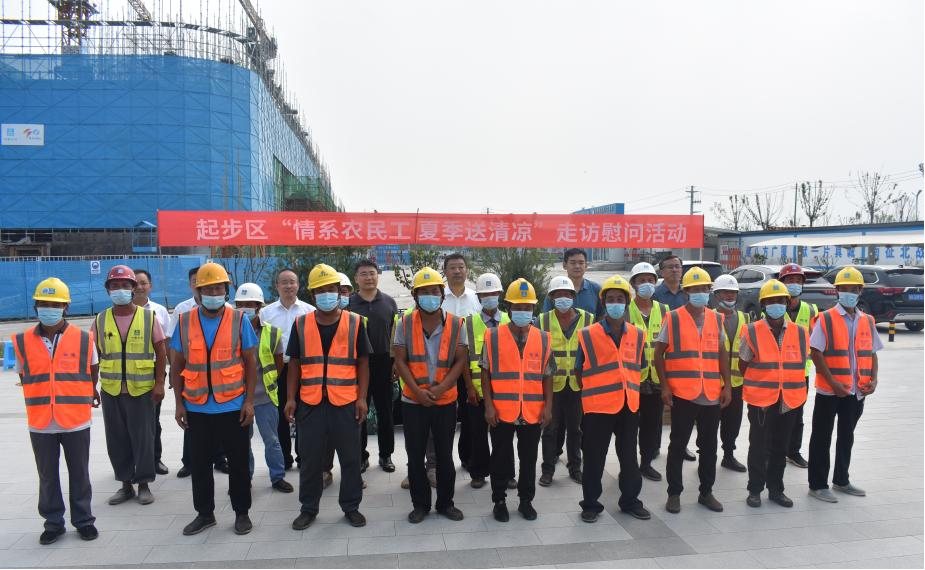 為進(jìn)一步延伸黨建工作服務(wù)范圍,提升黨員干部為民辦實(shí)事能力,切實(shí)做好一線建筑工人的防暑關(guān)愛工作,8月2日,起步區(qū)管委會(huì)主任助理兼綜合執(zhí)法部部長(zhǎng)孟克非,建設(shè)集團(tuán)黨委副書記鐘善良帶隊(duì)到山大二院起步區(qū)新院項(xiàng)目開展“夏季送清涼”走訪慰問活動(dòng)。