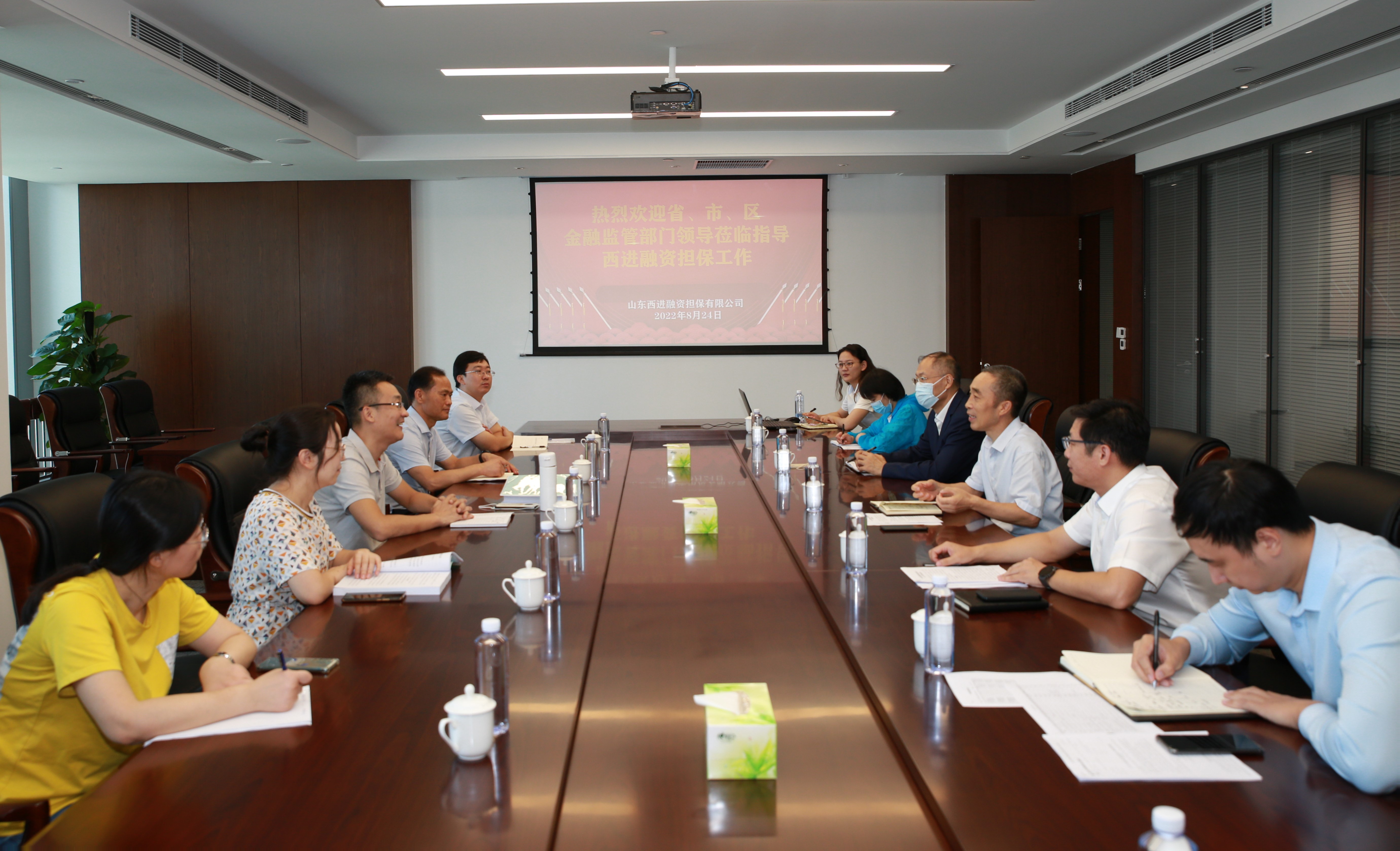 8月24日上午,山東省地方金融監(jiān)管局監(jiān)管二處岳曉光處長一行來到山東西進(jìn)融資擔(dān)保有限公司開展專項(xiàng)檢查,并召開工作會議。市、區(qū)金融監(jiān)管部門相關(guān)領(lǐng)導(dǎo)陪同參加,集團(tuán)黨委委員、總會計(jì)師范天云,西進(jìn)擔(dān)保公司相關(guān)人員參加了會議。