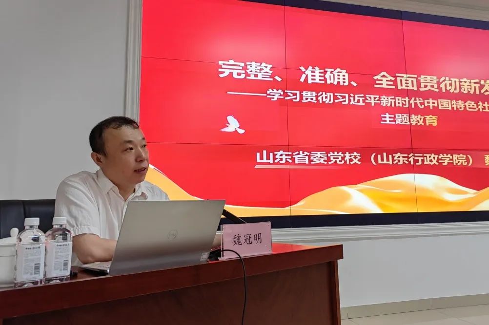 活動邀請省委黨校中共黨史教研部副教授、山東省習(xí)近平新時代中國特色社會主義思想研究中心研究員魏冠明進(jìn)行專題授課,魏冠明以“完整、準(zhǔn)確、全面貫徹新發(fā)展理念--學(xué)習(xí)貫徹習(xí)近平新時代中國特色社會主義思想主題教育”為主題,全面解讀了新發(fā)展理念的內(nèi)涵要義、政策啟示和重大意義,推動黨員干部進(jìn)一步學(xué)懂弄通做實習(xí)近平新時代中國特色社會主義思想。