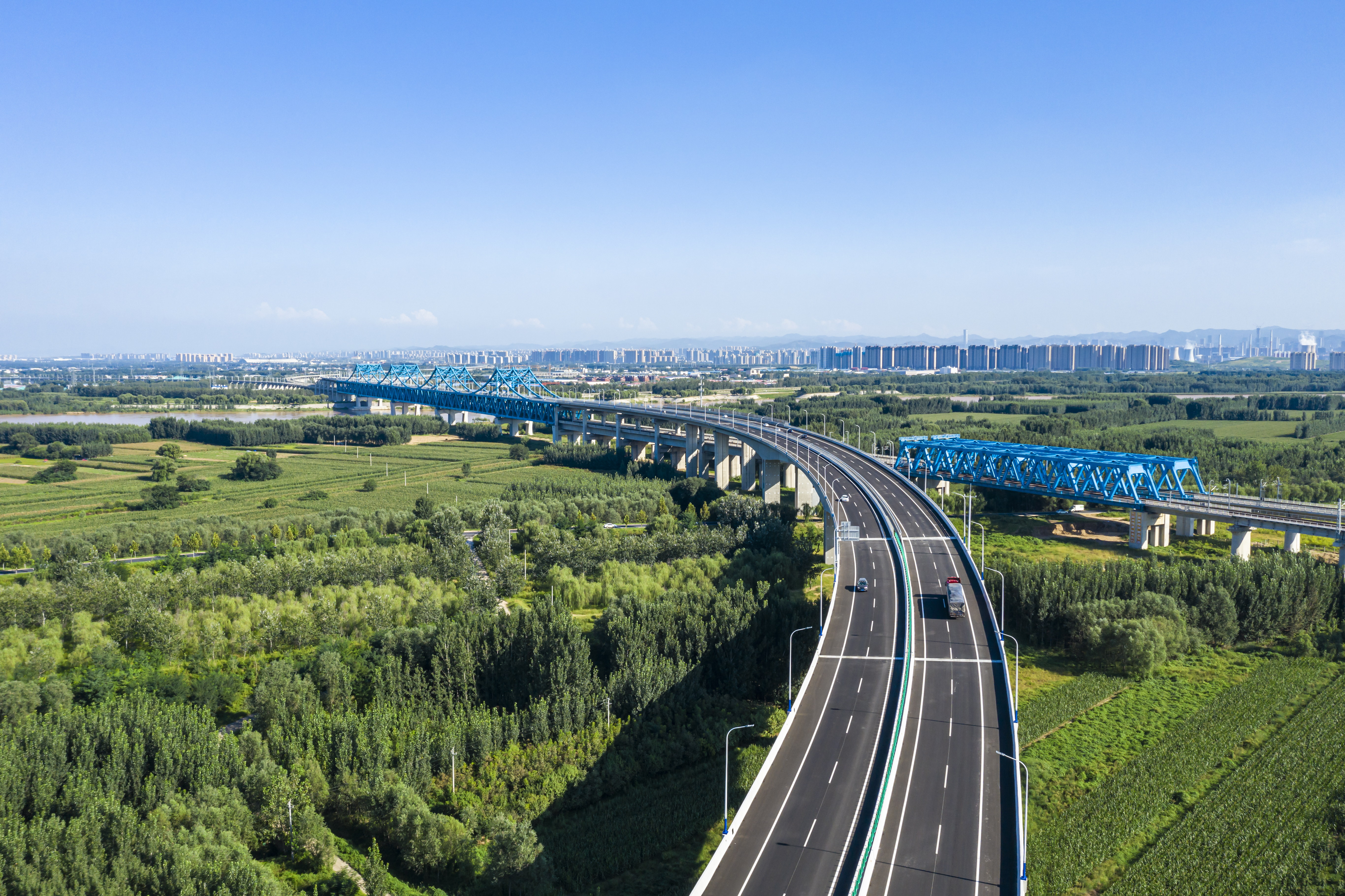 濟(jì)南至樂陵高速公路南延線項(xiàng)目起點(diǎn)位于濟(jì)樂高速與青銀高速連接的崔寨樞紐互通立交,向南跨越G220國(guó)道及黃河,順接濟(jì)南市規(guī)劃城市主干道荷花路。項(xiàng)目全長(zhǎng)12.668公里(含公鐵合建段1.796公里),概算投資51.05億元,雙向四車道,設(shè)計(jì)速度100公里/小時(shí)。設(shè)華山北、崔寨南收費(fèi)站2處,養(yǎng)護(hù)工區(qū)1處、監(jiān)控管理分中心1處。