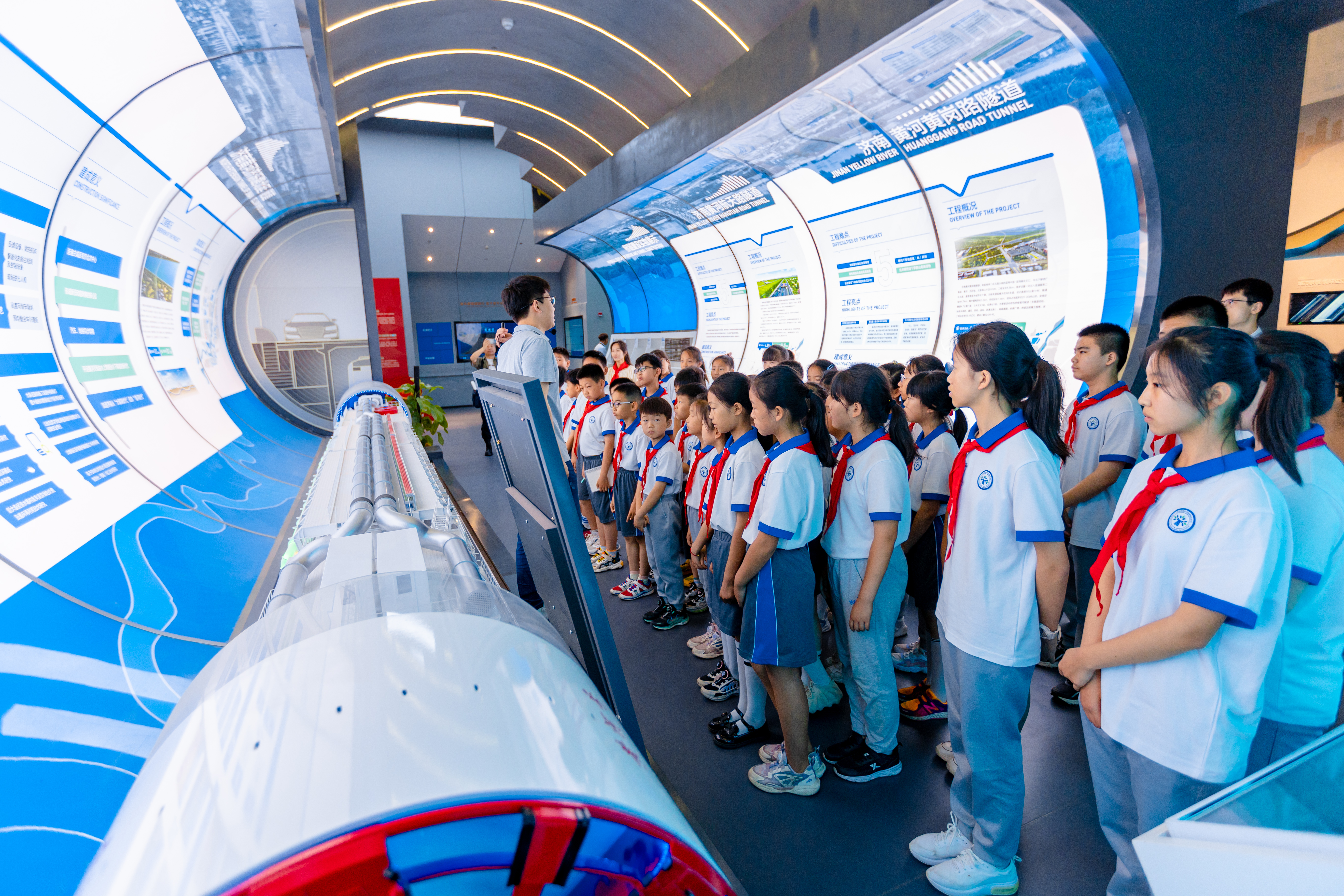 在濟南城市建設(shè)集團“四橋四隧”展廳,少先隊員們感受了濟南城市建設(shè)集團在落實黃河流域生態(tài)保護和高質(zhì)量發(fā)展戰(zhàn)略及“項目建設(shè)年”工作部署中的生動實踐。