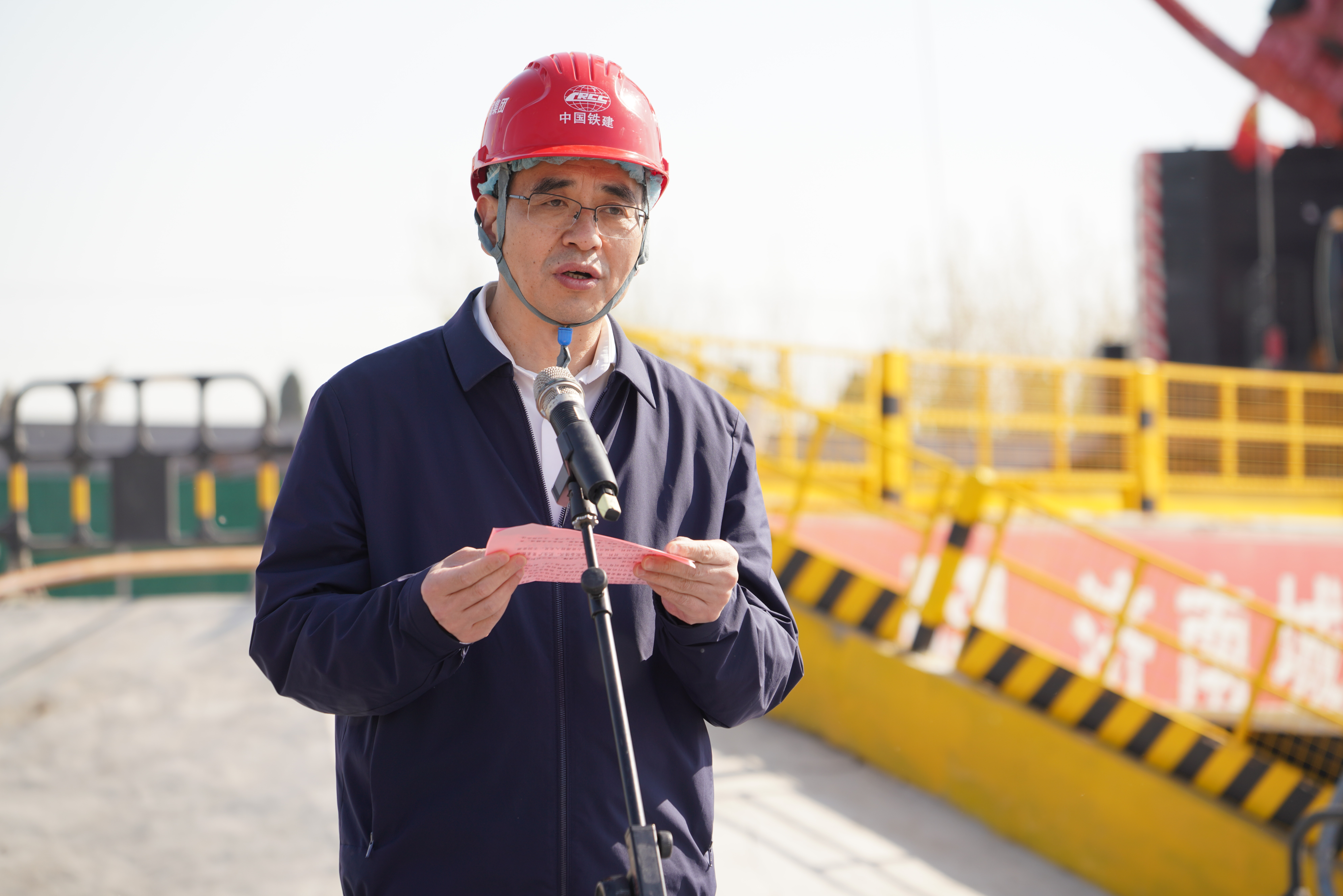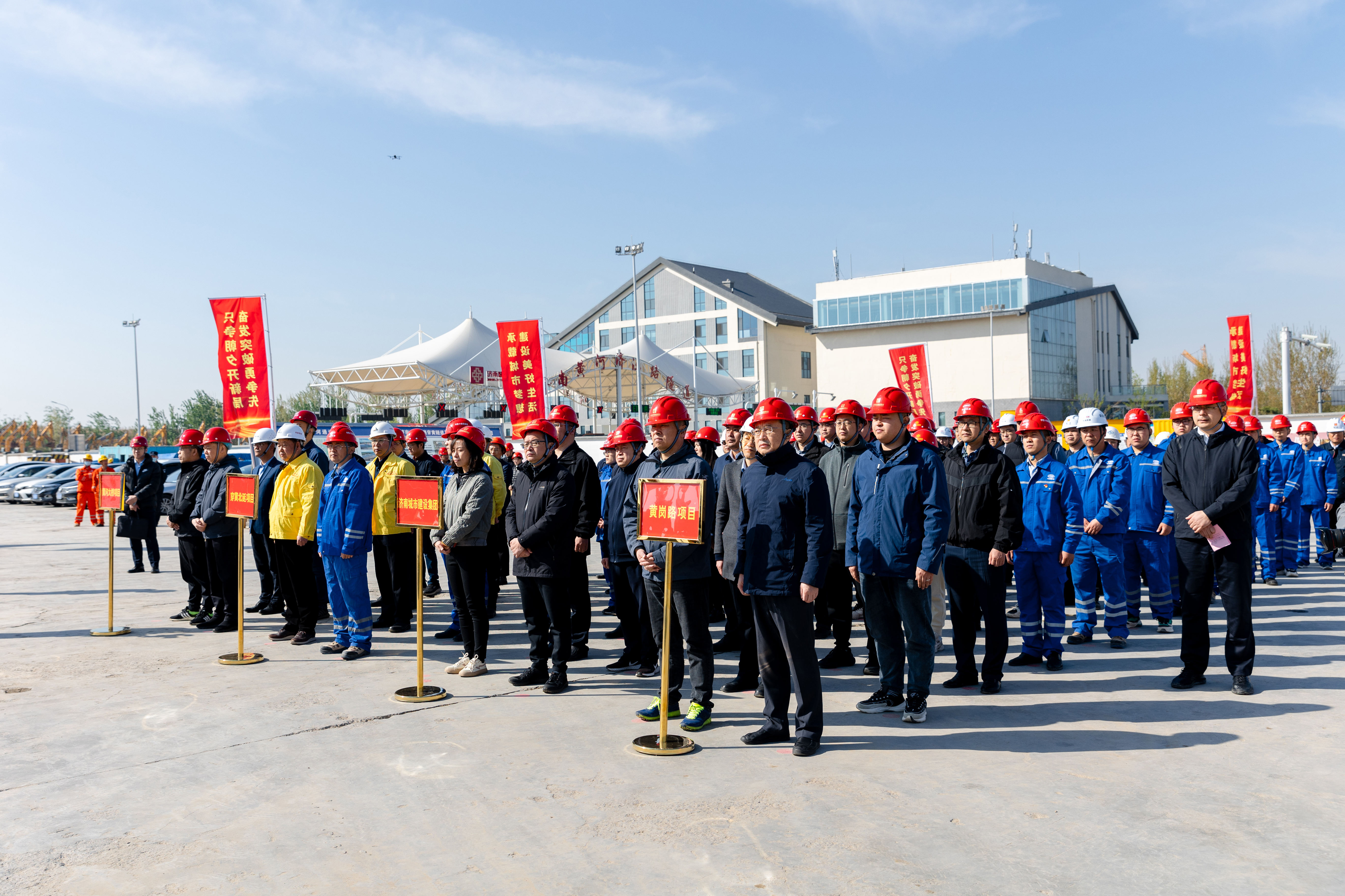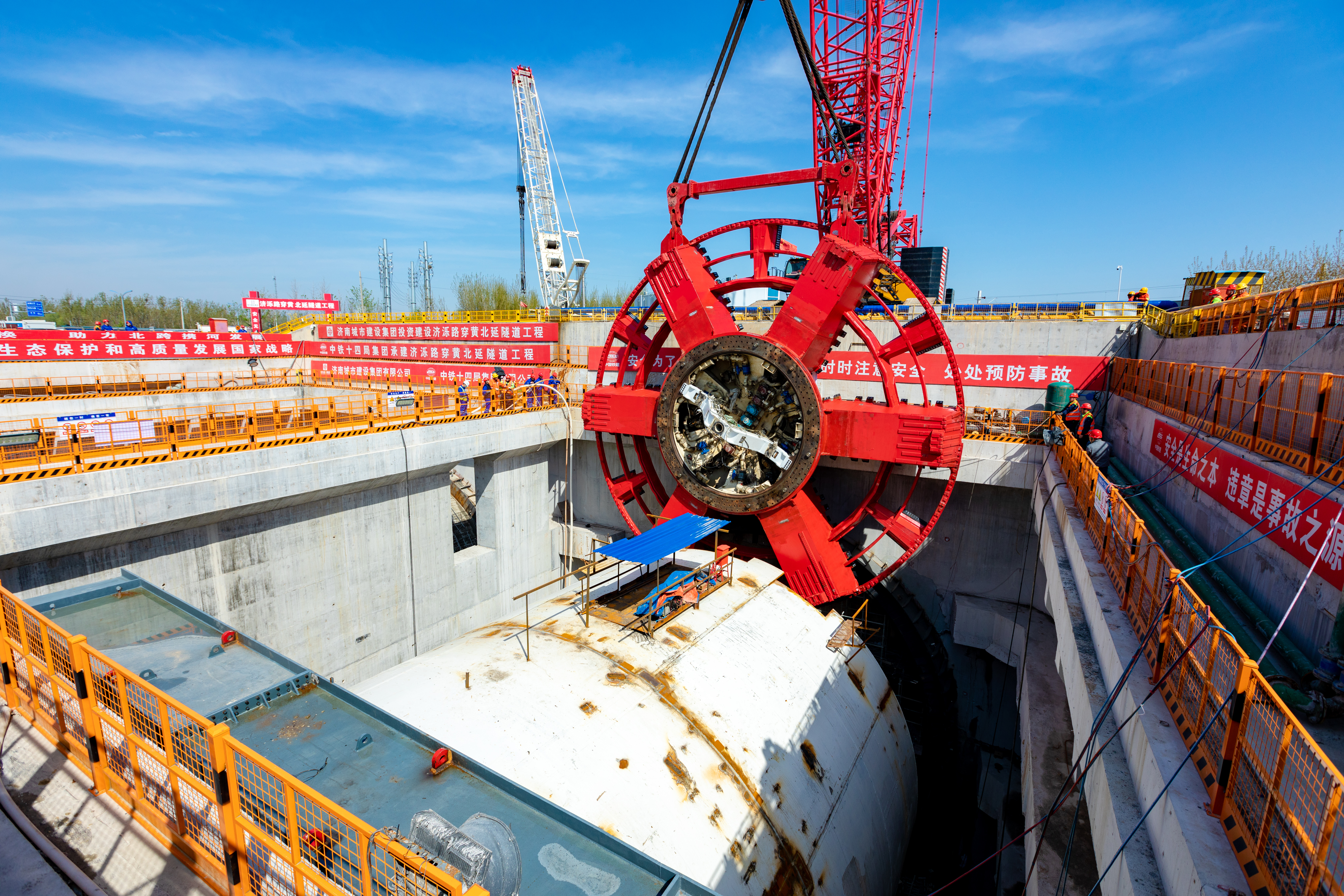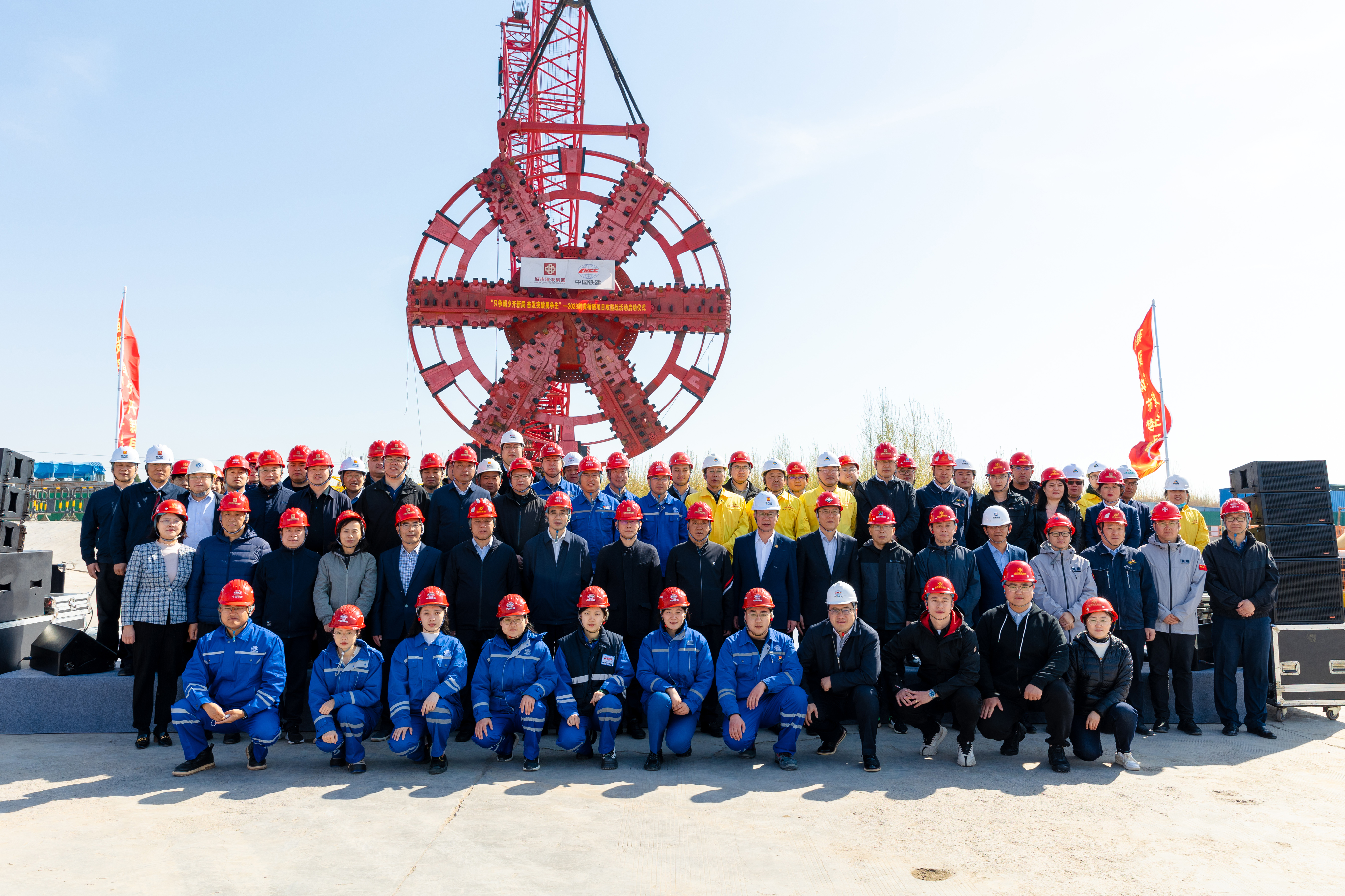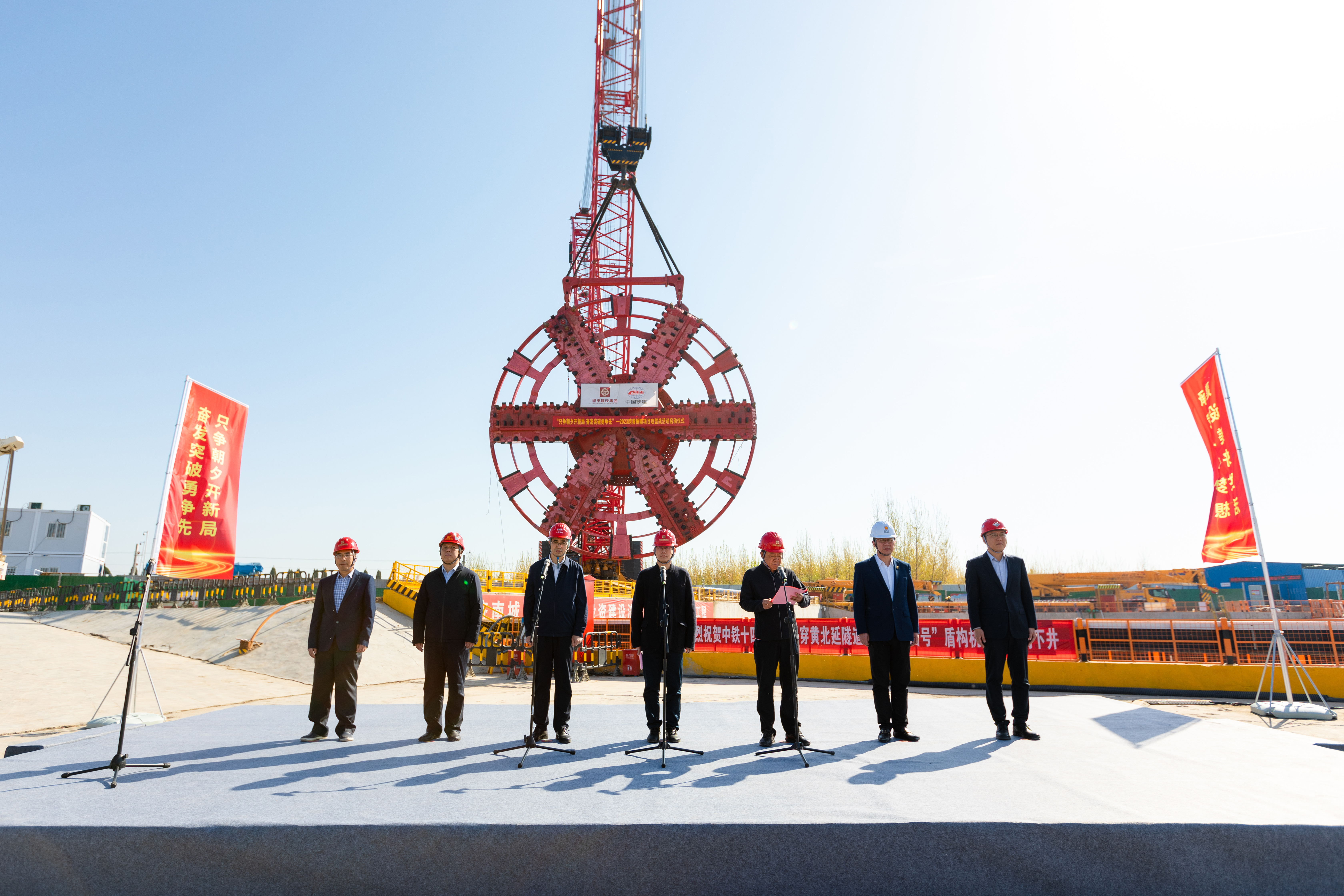 4月8日,建設(shè)集團在濟濼路穿黃北延隧道盾構(gòu)始發(fā)井現(xiàn)場舉行“只爭朝夕開新局,奮發(fā)突破勇爭先”2023年跨黃橋隧項目攻堅戰(zhàn)活動啟動儀式。