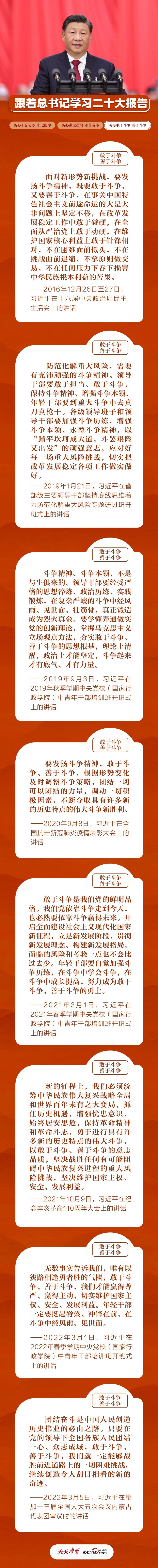 敢于斗爭是戰(zhàn)勝風險挑戰(zhàn)的前提,善于斗爭是戰(zhàn)勝風險挑戰(zhàn)的保障。黨的十八大以來,習近平總書記在不同場合多次強調(diào)要“敢于斗爭”“善于斗爭”。今天,我們梳理部分有關(guān)重要論述,與您一同學習。
