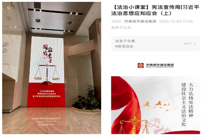 2023年12月1日至7日是全國第六個憲法宣傳周,集團根據(jù)市國資委《濟南市2023年憲法宣傳周、山東省法治宣傳教育月暨爭創(chuàng)全國法治政府建設示范市集中宣傳活動方案》要求,認真開展了2023年國家憲法宣傳周活動,大力加強習近平法治思想與憲法的學習宣傳,積極引導集團廣大干部職工尊法學法守法用法,推動法治宣傳教育走深走實。