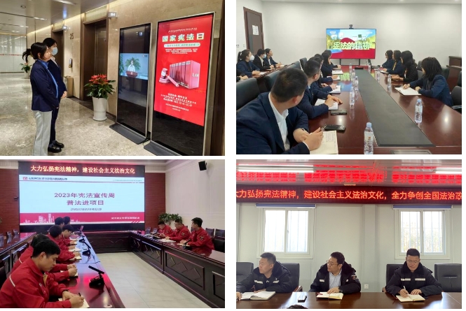 金衢公司積極開展“憲法宣傳周”系列活動,組織各黨員干部、職工觀看由司法部、全國普法辦、中央廣播電視總臺主辦的“憲法的精神法治的力量—2023年度法治人物”專題節(jié)目;在辦公區(qū)域顯要位置,使用電子顯示屏展示憲法宣傳周海報、示范創(chuàng)建標語口號;組織學法工作,重點加強黨的二十大精神、習近平法治思想,及憲法、民法典等常用法律知識學習,討論交流學習心得,提升廣大干部職工法治素養(yǎng)。