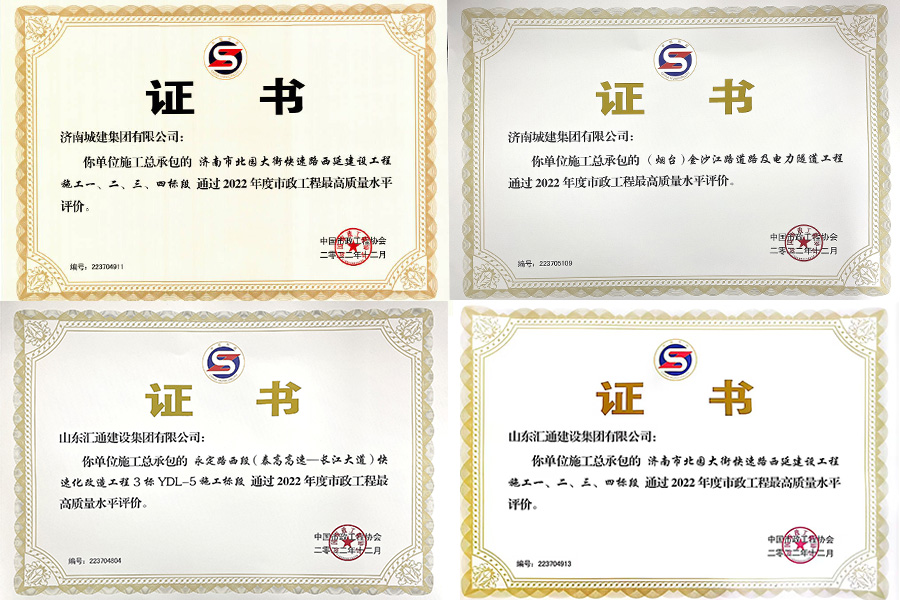 近日,中國市政工程協(xié)會公布2022年度通過市政工程最高質量水平評價工程名單,建設集團所屬濟南城建集團公司承建的濟南市北園大街快速路西延建設工程、(煙臺)金沙江路道路及電力隧道工程、永定路西段(泰高高速—長江大道)快速化改造工程獲得四項“2022年度市政工程最高質量水平評價”。
