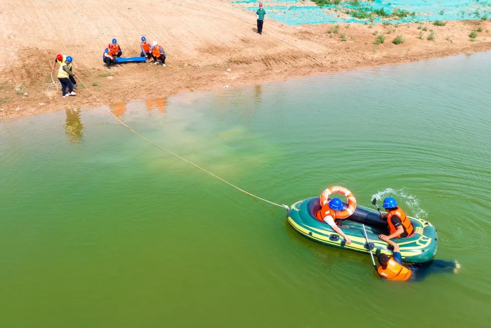 本次防汛搶險(xiǎn)演練模擬遇到暴雨天氣,發(fā)生人員落水、水位上漲過(guò)快等危險(xiǎn)情況時(shí)的應(yīng)急處置工作流程,設(shè)置險(xiǎn)情上報(bào)、救生艇救援、醫(yī)療救護(hù)、緊急排水等環(huán)節(jié),演練過(guò)程中,各小組嚴(yán)格按照流程開展工作,充分展現(xiàn)出了現(xiàn)場(chǎng)緊急處理能力和團(tuán)隊(duì)協(xié)作精神。