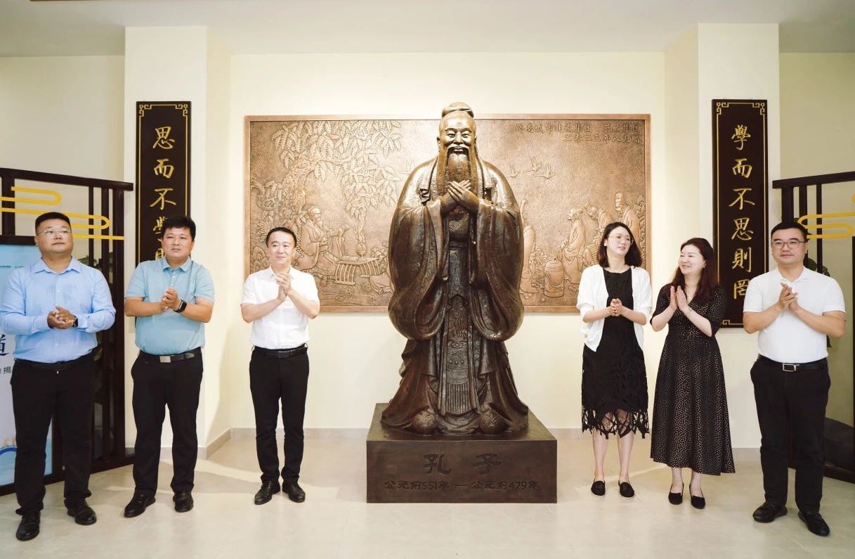 此次捐贈的孔子像由孔子博物館孔子像雕塑大師韓楓制作,銅像雙手交叉于胸前,交疊的手大拇指不露出,象征著為人謙恭有禮,四指并攏未出,則有四海之內(nèi)皆兄弟的天下大同的象征意義。楊柳春風學校所秉持的“天賦自由 百花競芳”的辦學理念,正是孔子有教無類、因材施教的思想與精神的生動體現(xiàn),學校推出多門項目化學習課程,將課內(nèi)與課外融合、書本與實際相連,致力將每一個孩子成長為最好的自己。銅像進駐校園,不僅喚醒同學們內(nèi)心對中國文化的情感共鳴,更激勵學子們以孔子的智慧與人格比照自己的進步與成長,努力成為誠信、仁愛、堅毅、有為的人。
