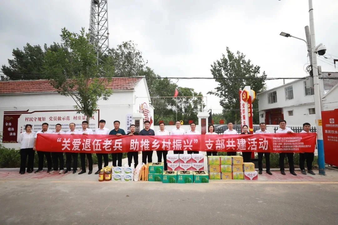 濟南萬融產業(yè)發(fā)展集團商業(yè)板塊黨支部聯(lián)合多家單位,在濟南市商河縣玉皇廟鎮(zhèn)路陳村開展“關愛退伍老兵 助推鄉(xiāng)村振興”支部共建活動,走訪慰問村退伍軍人家庭。各支部黨員代表進行了支部共建簽約儀式,并共同為路陳村農村書屋捐贈圖書、夏涼慰問品。