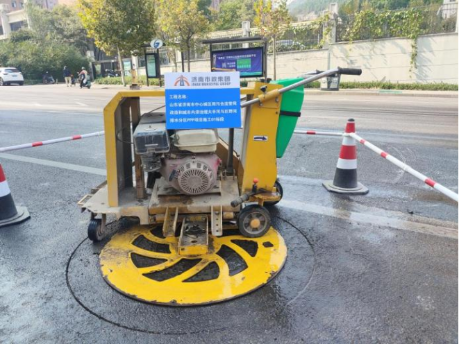 濟南市大辛河和巨野河排水分區(qū)雨污分流項目部積極使用井蓋自動割圓機,提升割縫的精度和效率,開啟智能機械化施工。