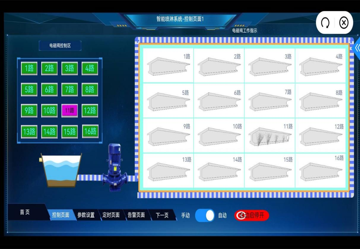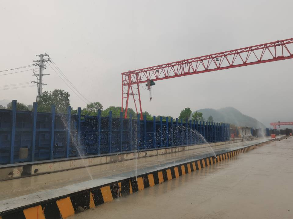 該系統(tǒng)在梁場建設(shè)時提前在臺座中預(yù)埋噴淋管道,管道與自動供儲水后臺相連通。當(dāng)T梁模板拆除后,可通過手機APP控制噴淋系統(tǒng)對T梁的腹板和翼板進行全面均勻噴灑,確保T梁養(yǎng)護無死角,同時通過手機應(yīng)用控制養(yǎng)護操作,隨時隨地一鍵啟動或關(guān)閉,必要時選擇自動化模式,實現(xiàn)T梁24小時不間斷養(yǎng)護。
