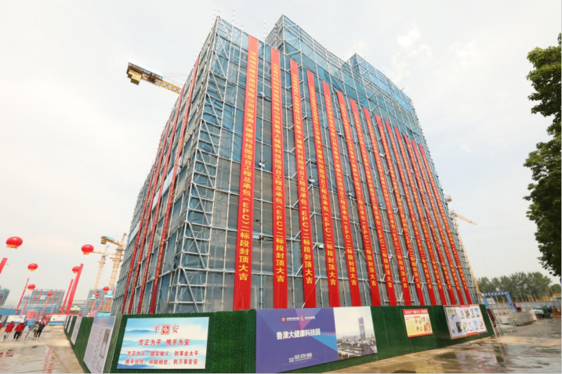 魯澳大健康科技園是山東省與澳門在中醫(yī)藥領(lǐng)域合作的核心平臺(tái),由濟(jì)南市、山東中醫(yī)藥大學(xué)、澳門科技大學(xué)三方聯(lián)手打造。項(xiàng)目位于長清區(qū)大學(xué)路,總建筑面積19.6萬㎡,是建設(shè)集團(tuán)產(chǎn)業(yè)園經(jīng)濟(jì)產(chǎn)業(yè)鏈?zhǔn)着?xiàng)目,由所屬山東貫月科創(chuàng)投資集團(tuán)投資建設(shè)。項(xiàng)目共分為兩個(gè)標(biāo)段,當(dāng)前封頂?shù)膶儆诙?biāo)段。