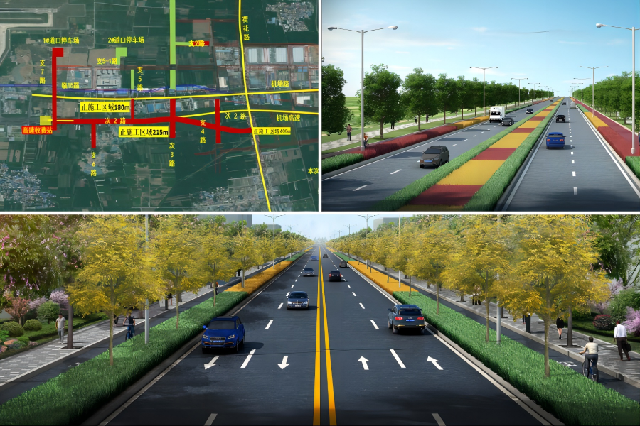 濟(jì)南遙墻機(jī)場(chǎng)二期改擴(kuò)建工程城市道路工程是連接遙墻機(jī)場(chǎng)與濟(jì)南主城區(qū)的重要通道,也是連接臨空片區(qū)和臨港片區(qū)的關(guān)鍵道路群,包含南主進(jìn)出場(chǎng)路高架及地面道路工程等施工內(nèi)容。本次驗(yàn)收的濟(jì)南遙墻機(jī)場(chǎng)二期改擴(kuò)建工程首批城市道路工程包含次3路、支2路、支5路、支5-1路共4條道路,道路長(zhǎng)2.8公里,道路紅線寬30~50米。