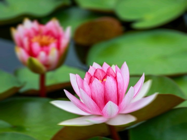 秋風(fēng)起時,睡蓮輕展笑顏,與夏荷遺韻共舞,清麗脫俗,宛如睡夢中的仙子,喚醒秋的柔情與雅致。