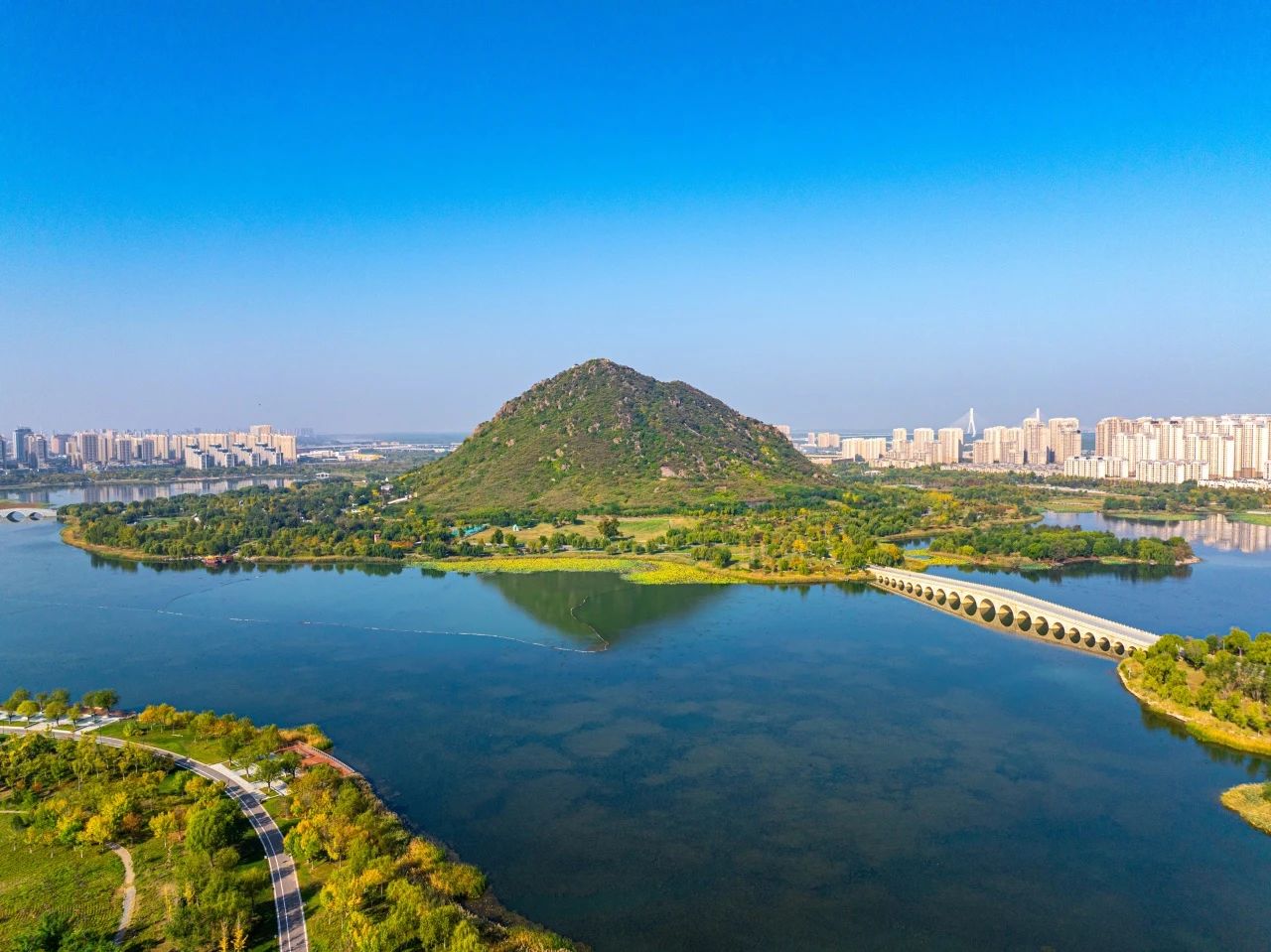 2013年以來,濟南持續(xù)整治建設(shè)華山片區(qū),面積達6平方公里之多的華山歷史文化濕地公園建成納客。海拔197米的華不注山下,華陽宮莊嚴(yán)肅穆,環(huán)山湖泊水波蕩漾。一幅新時代的鵲華秋色畫卷徐徐展開。
