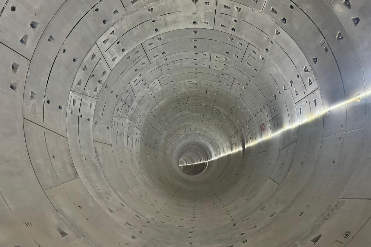 本次通過驗收的子單位工程為9號線一期工程黃勝盾構(gòu)區(qū)間,區(qū)間全長504米,項目北側(cè)與黃河直線距離約為500米,地層滲透系高,施工期間正處豐水期,水量較大,項目團隊通過優(yōu)化盾構(gòu)機選型引入智能化監(jiān)測系統(tǒng),實時調(diào)整掘進參數(shù),同步應(yīng)用注漿實施檢測設(shè)備保證注漿量密實,有效克服了地層沉降風險及隧道滲漏水問題,實現(xiàn)盾構(gòu)隧道“零滲漏、零預(yù)警”的高標準貫通。